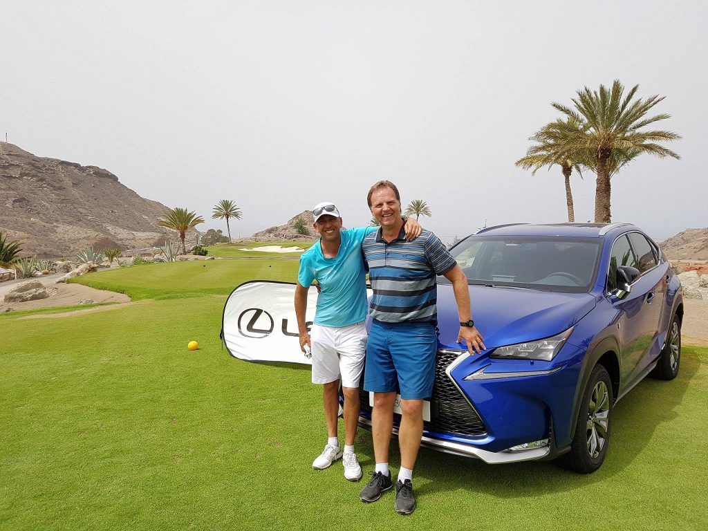 På bildet ser vi Allan sammen med turneringsvinner Craig foran dagens premie for Hole-in-one. Så vidt vi vet ble bilen stående også etter at turneringen var over.