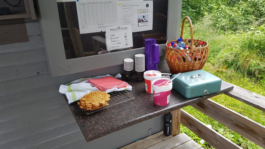 Det er også denne sesongen «golfkafe» ved brakka vår hver helg (åpen kl 12-17), til glede for alle som er innom banen for å spille golf – og som dermed kan sette for å ta en kaffekopp etter runden.