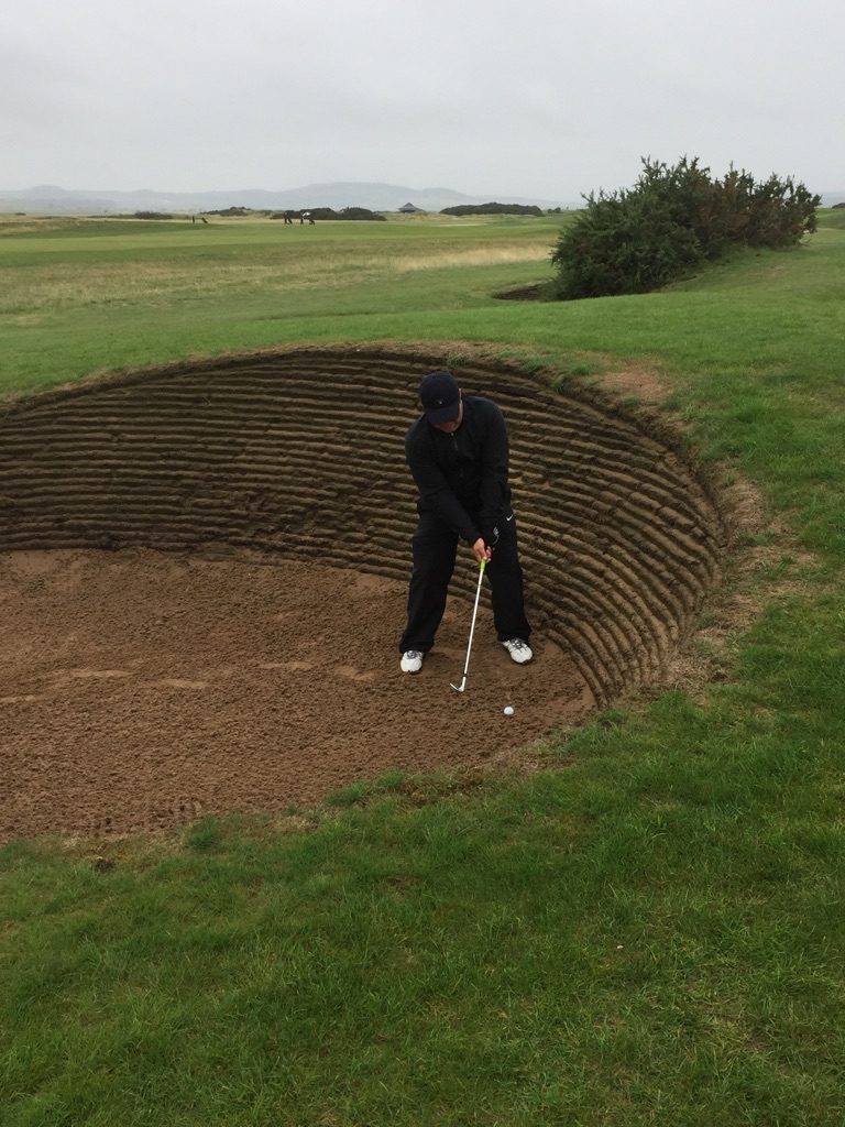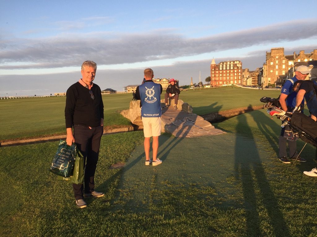 …. og samme dag på Eden Course – som ligger mellom New Course og Old Course i St. Andrews. Stig Talgø ser forventningsfull ut, og er klar for utslag.