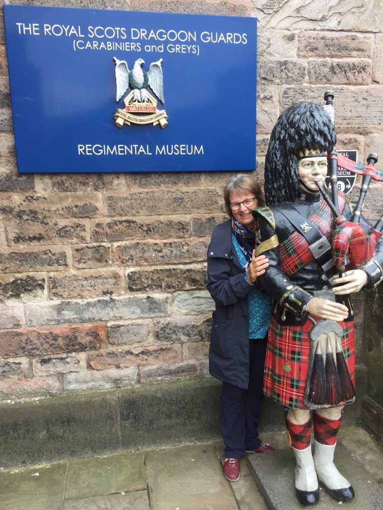 Skottland betyr selvfølgelig også kilt. Men det norske reisefølget hennes fulgte ikke de lokale skikker om bekledning, så Tove måtte lete blant de innfødte for å finne en kar med kilt 🙂