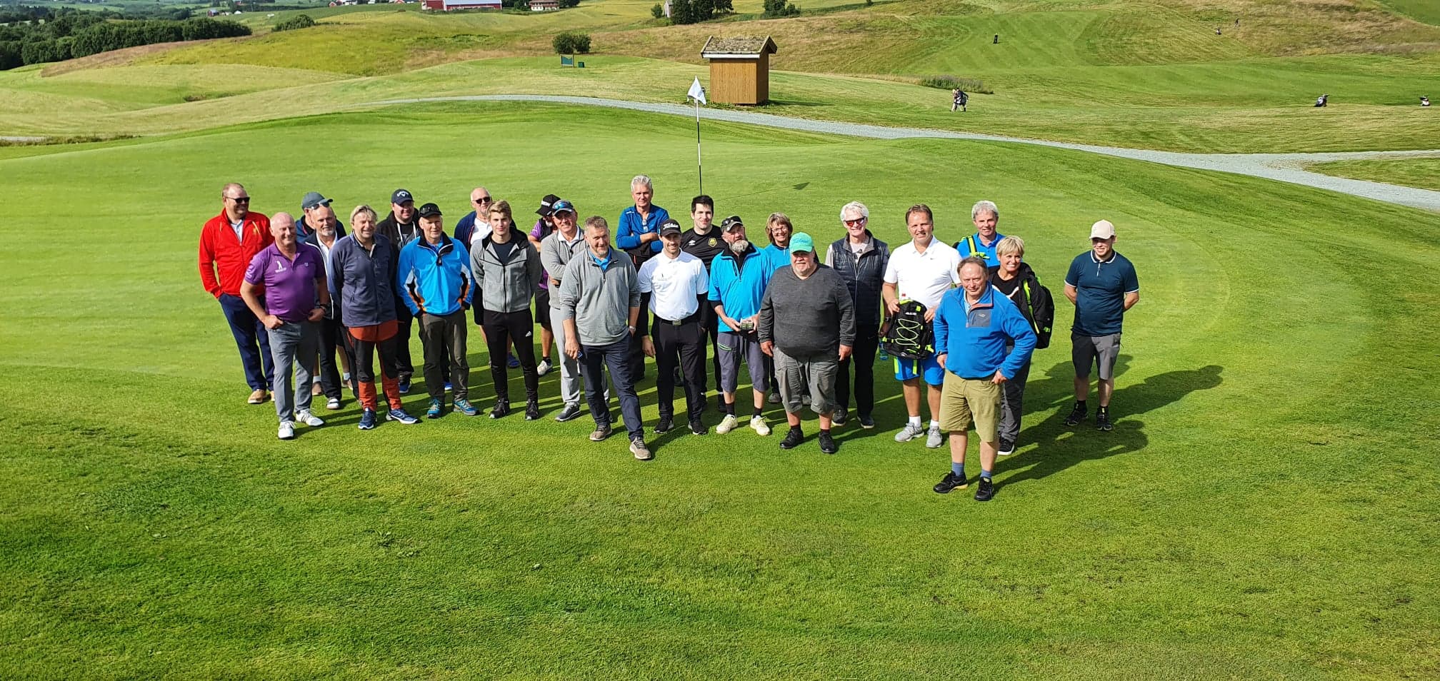 Her er hele gjengen samlet ved greenen på hull 18 etter innkomst og premieutdeling.