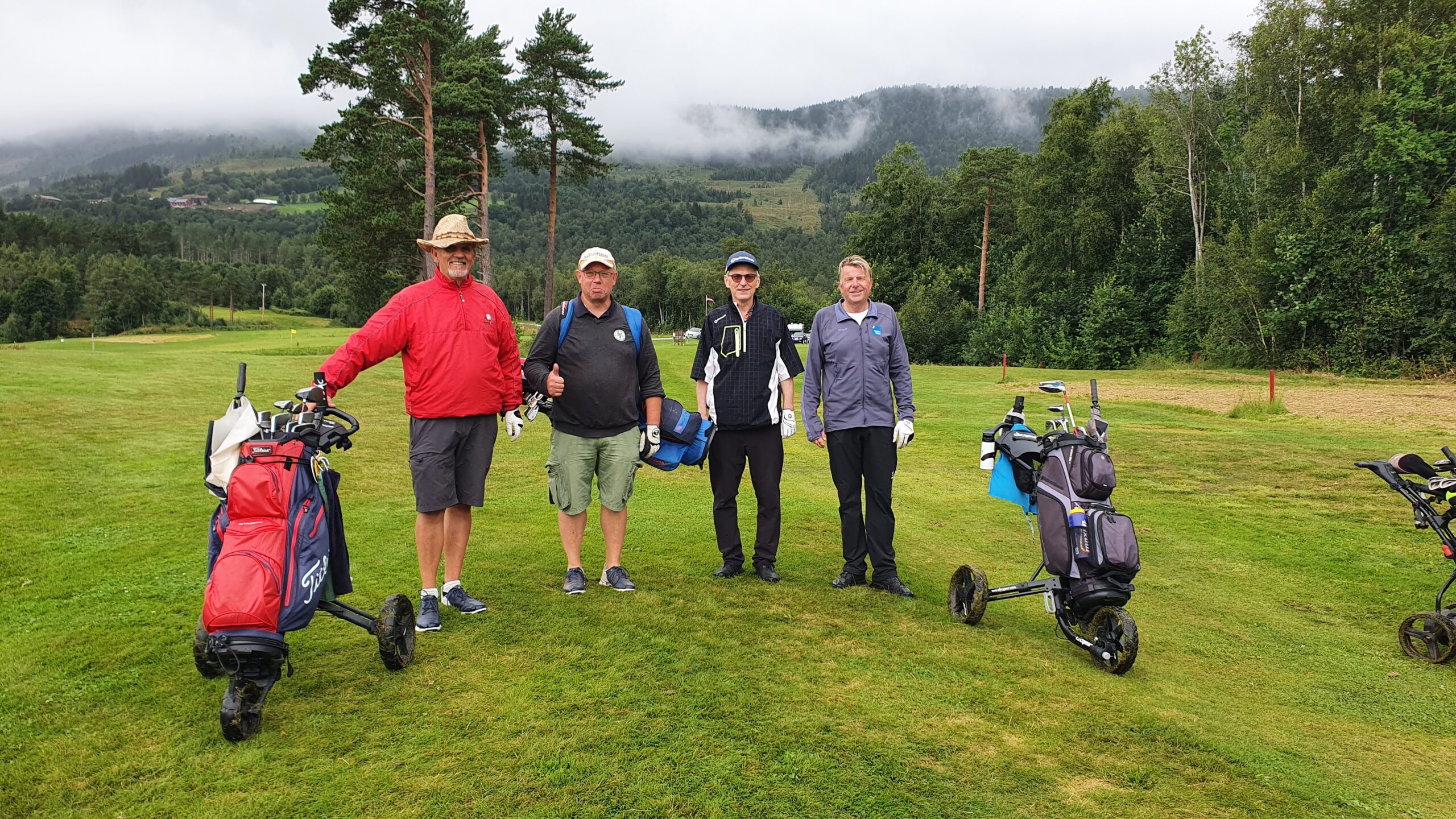 Ole Johan Rødal (Kristiansund og omegn GK, Ola Ansgar Løvold (Tingvoll GK), Jan Erik Waagan (Kristiansund og omegn GK) og Tor Oterhals (Surnadal GK) stilte velvillig opp for et lagbilde underveis på hull 1.