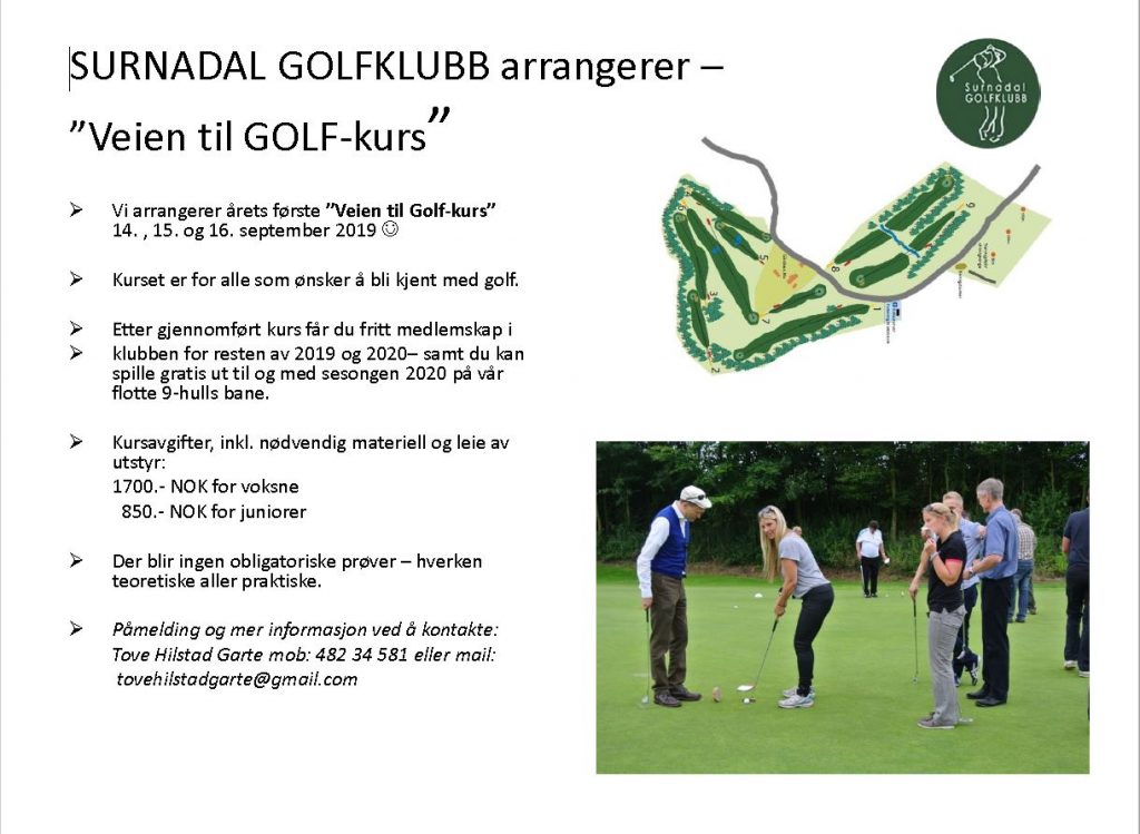 Se «plakaten» nedenfor – og tips gjerne venner og kjente (som kanskje ikke er inne på golfklubbens hjemmesider så ofte) – så får vi fylt opp kurset med mange ivrige nye golfere 🙂