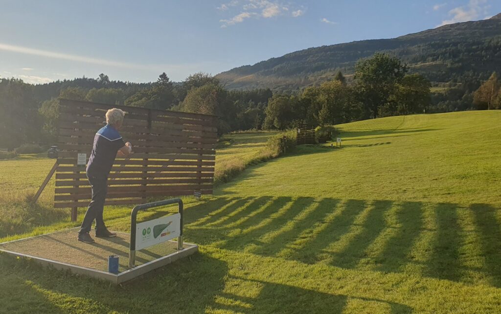 Audun Moen Skei sikret seg 2. plass i klasse B netto.  Her slår han ut på hull 10, mens Knut Bergli og Lars Kristian Todal følger med i bakgrunnen.