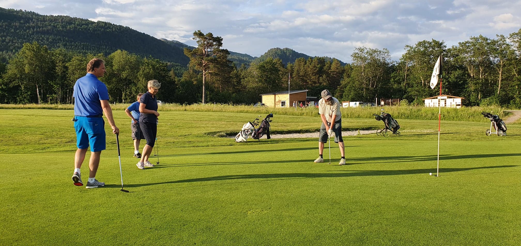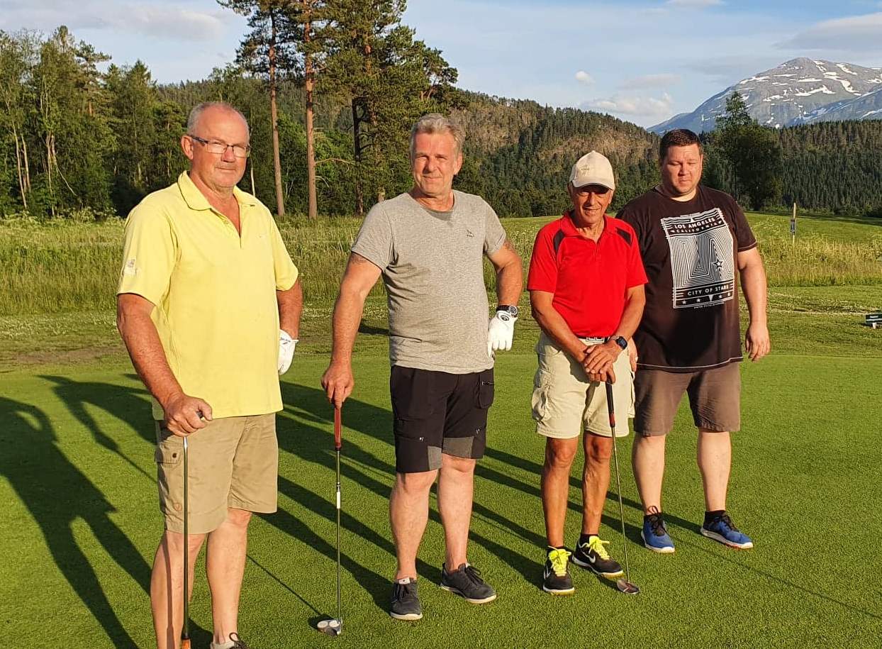 Svein Arne Andresen fra Vestfold GK (nr 2 fra venstre) deltok også i kveldens runde av Surnadal Sparebank Challenge.  Her sammen med Geir Berntsen, Nils Magne Røen og Arnstein Hilstad Garte.    Nils Magne spilte forresten en sterk runde i kveld, og ledet soleklart etter 7 hull.  Men rotet litt på hull 8, og dermed ble det «bare» delt førsteplass.