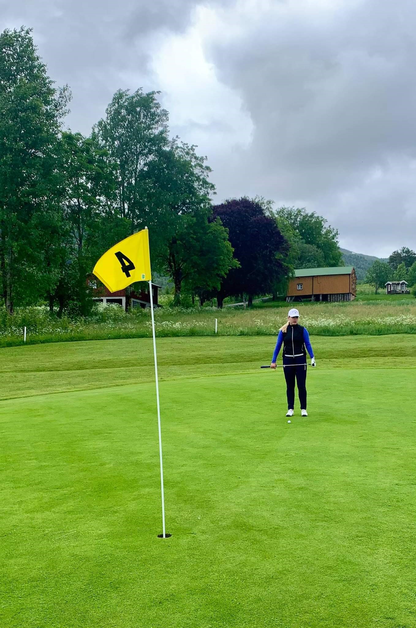 Ragnhild Snekvik slo seg på helt på greenen på hull 4, og medspiller Knut Bergli satte putten i hullet. Eagle !!!