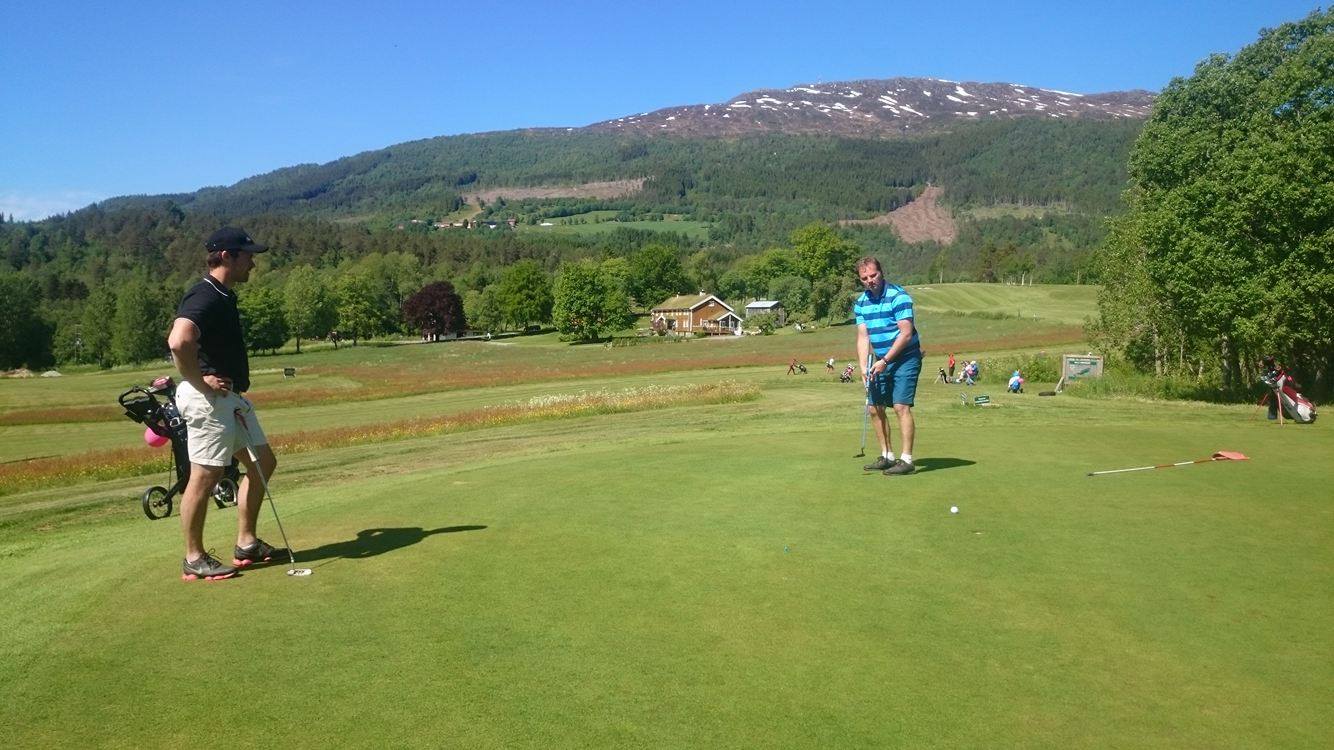 Heldigvis meldte mange seg på i siste liten. Det ble totalt 7 lag, og det ble spilt «Stableford (100% handikap) Scramble». Turneringsleder Stian hadde satt sammen en hel haug med gøyale leker rundt på hele banen.