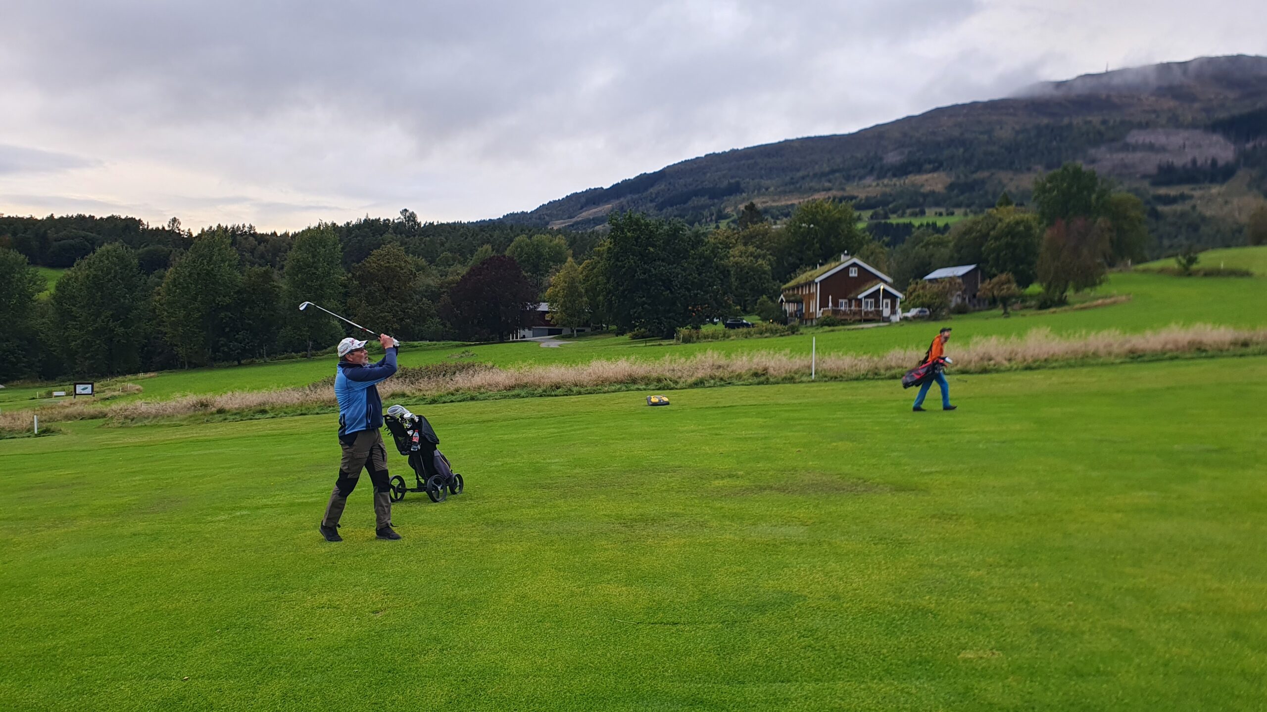 Knut Bergli slår her dagens første slag i det som skulle vise seg å bli en meget bra runde og 19 poeng.