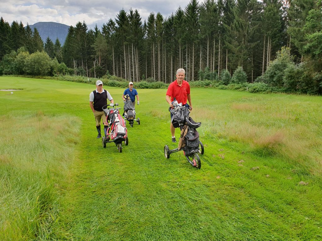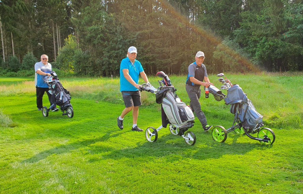 Arthur Melling, Palmar Brennskag og Nils Magne Røen med stø kurs for hull 4. Klubbmesterskapet ble forøvrig spilt i godt vær, med god temperatur og sol innimellom – og som vanlig kjempeflotte baneforhold.