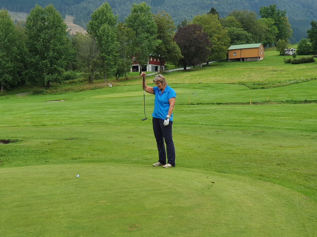Tove Hilstad Garte gjør sjelden store feil og er dyktig til å fokusere på å gjøre hvert enkelt slag skikkelig. Her er det full konsentrasjon før putten på hull 5.