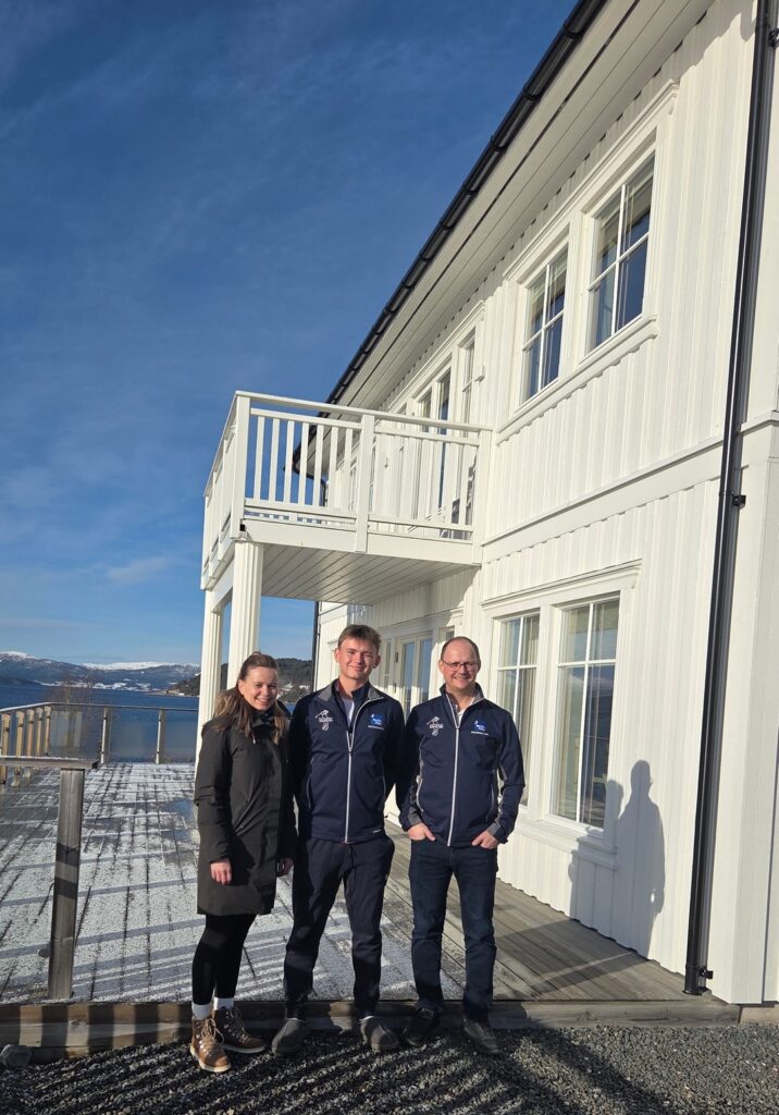 Men det ble også tid til et kjapt bilde sammen med mor Solveig og far Tom Erik foran huset i Kråkhaugen på Kvanne – før vinterferien var over – og Marius reiser «hjem» til Bærum igjen.