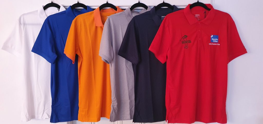 Det vil bli skjorter i forskjellige farger for hver golfmaraton i årene som kommer, så disse skjortene blir selvfølgelig attraktive samleobjekt. Norske Filter AS har nemlig lagt en plan for skjortefarger i mange år framover. Hvit (2021), rød (2022), kongeblå (2023), orange (2024), grå (2025), marine (2026) – og så begynner vi på nytt – med hvit skjorte i 2027 !! Så dette kan bli en fin samling i klesskapet for alle ivrige golfmaraton-deltakere 🙂