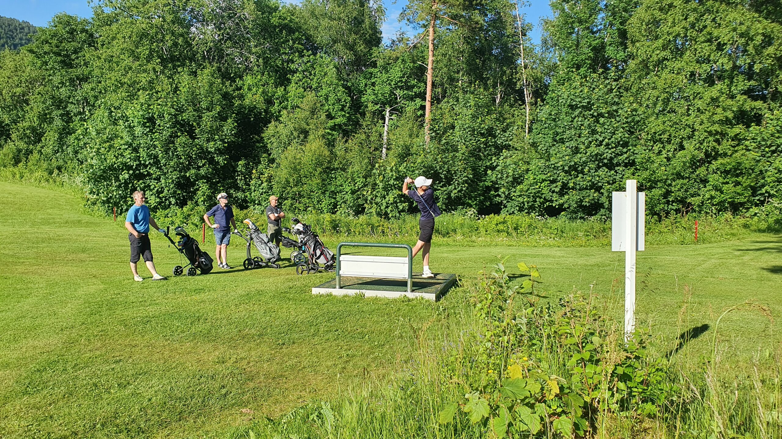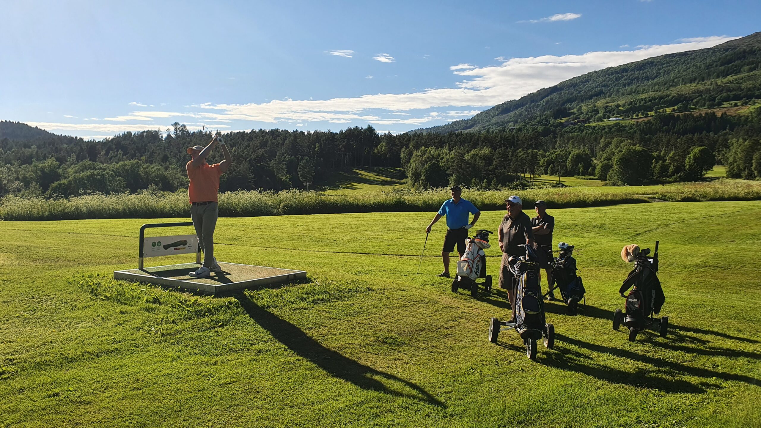 Knut Haugen slår ut på hull 17. Det er i alle fall upåklagelig fototeknisk 🙂 Fotograf: Heid Snekvik