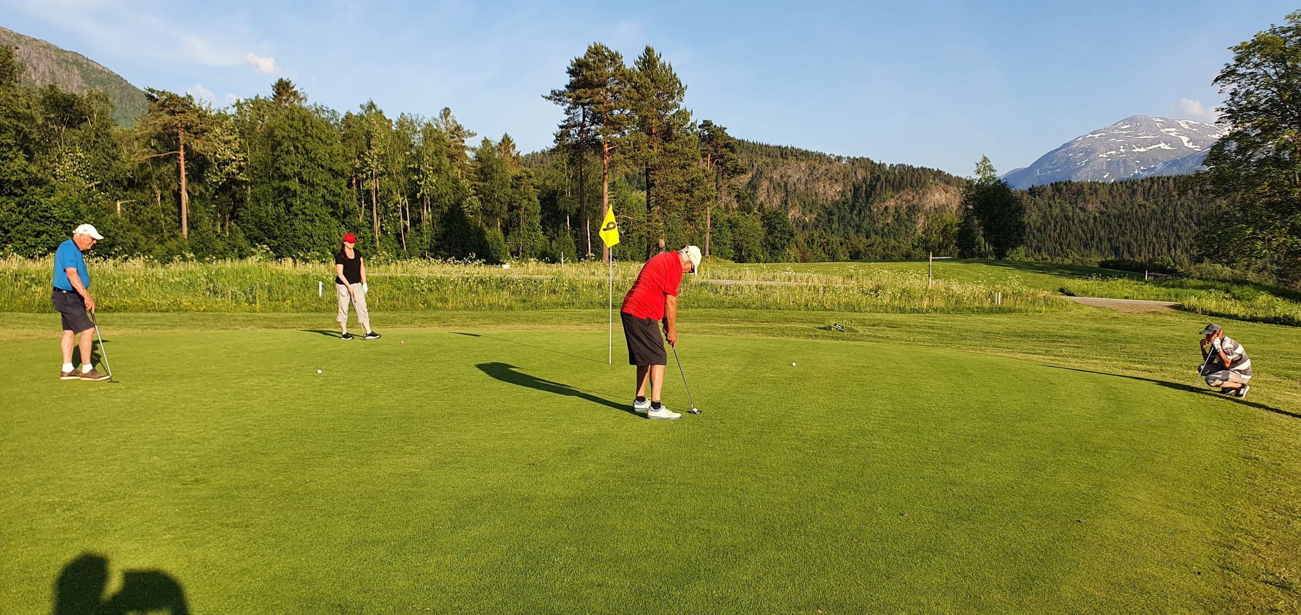 Vi hadde også en gjestespiller fra Longyearbyen GK i kveld. Utflytta surnadaling Frode Skei Gjengstø benyttet noen feriedager fra pilotjobben i Norwegian til å spille golf sammen med gamle kjente. Frode lovet forøvrig å melde overgang til Surnadal GK før neste sesong 🙂