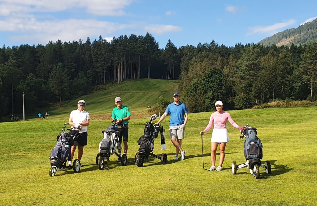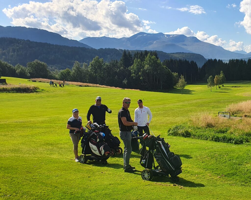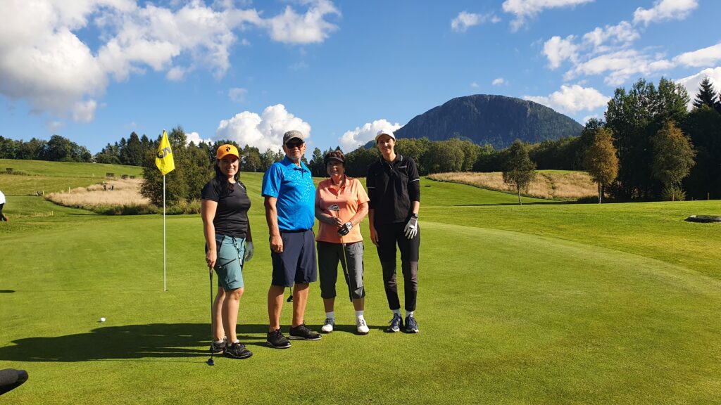 Berit Belsaas, Trond Kristian Grødal, Ole Christian Belsaas og Andreas Rødsand. Fra henholdsvis Byneset GK (Berit og Ole Christian) og Kristiansund og omegn GK (Trond og Andreas på «Birdieboys»)