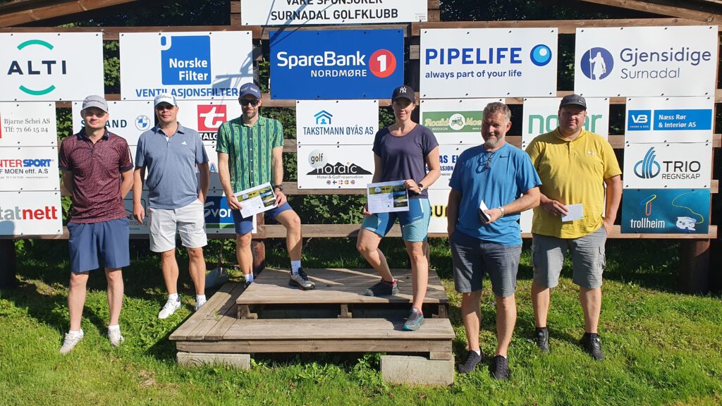 På bildet nedenfor ser vi de tre beste lagene; fra venstre «F1» (nr 2) med Kristian Tvedt / Bjørn Drage (begge fra Sunndal GK), «Chip o’hoi» med Jens Nervik / Kristin Grønnes og «Garte / Svinvik» med Øyvind Svinvik / Arnstein Hilstad Garte.
