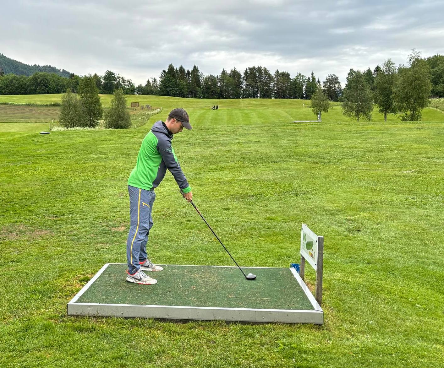 Knut Bergli startet med en råsterk birdie på hull 1, men måtte likevel innse at fru Laila var best i kveld 🙂