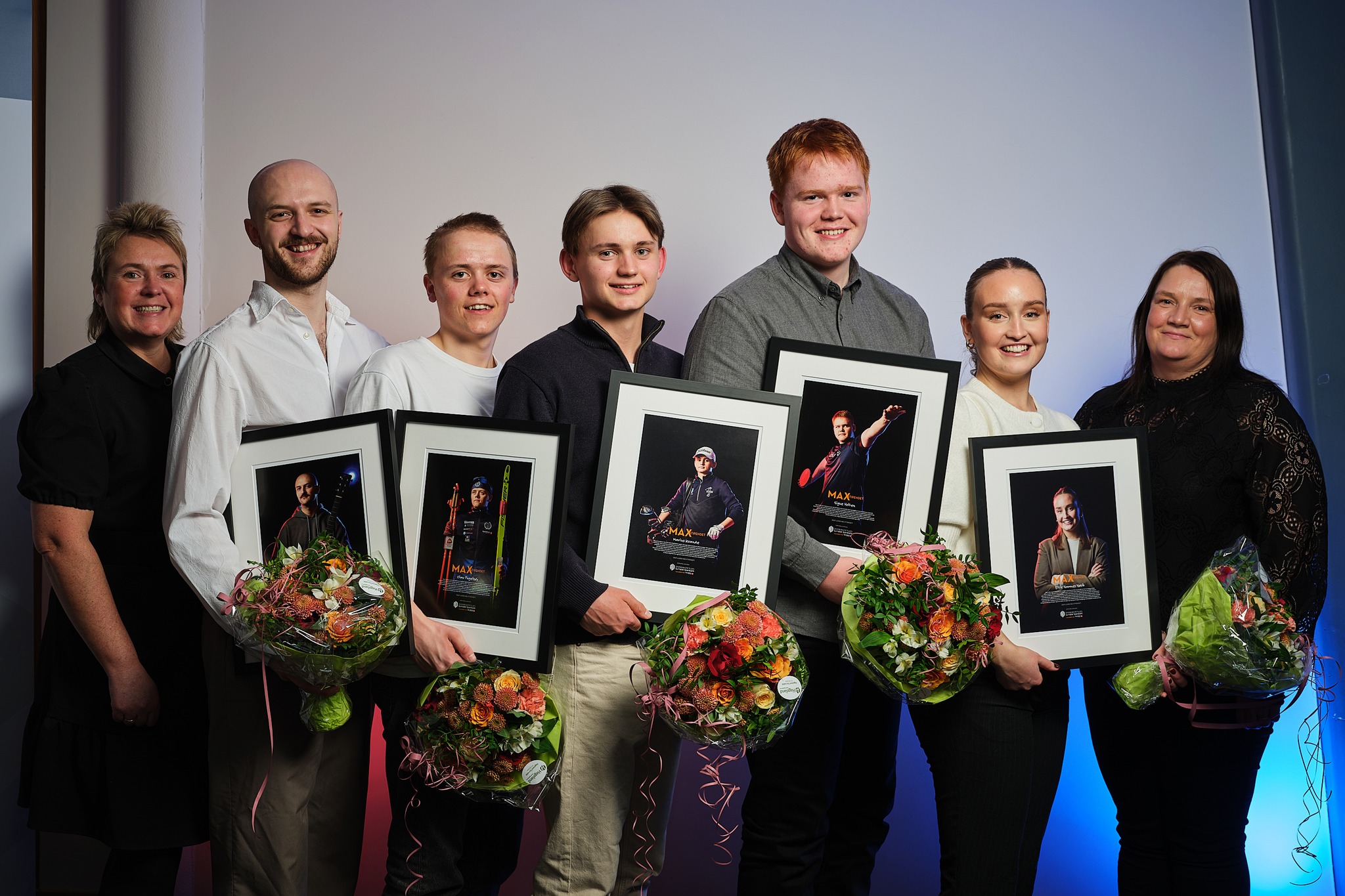 Årets vinnere av MAX-stipend (som fikk kr 50.000 hver): Øyvind Glåmen, Olav Fugelsøy, Marius Kvande, Sigve Holten og Elise Hamnes Høvik.