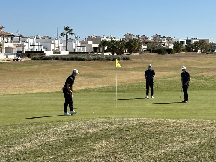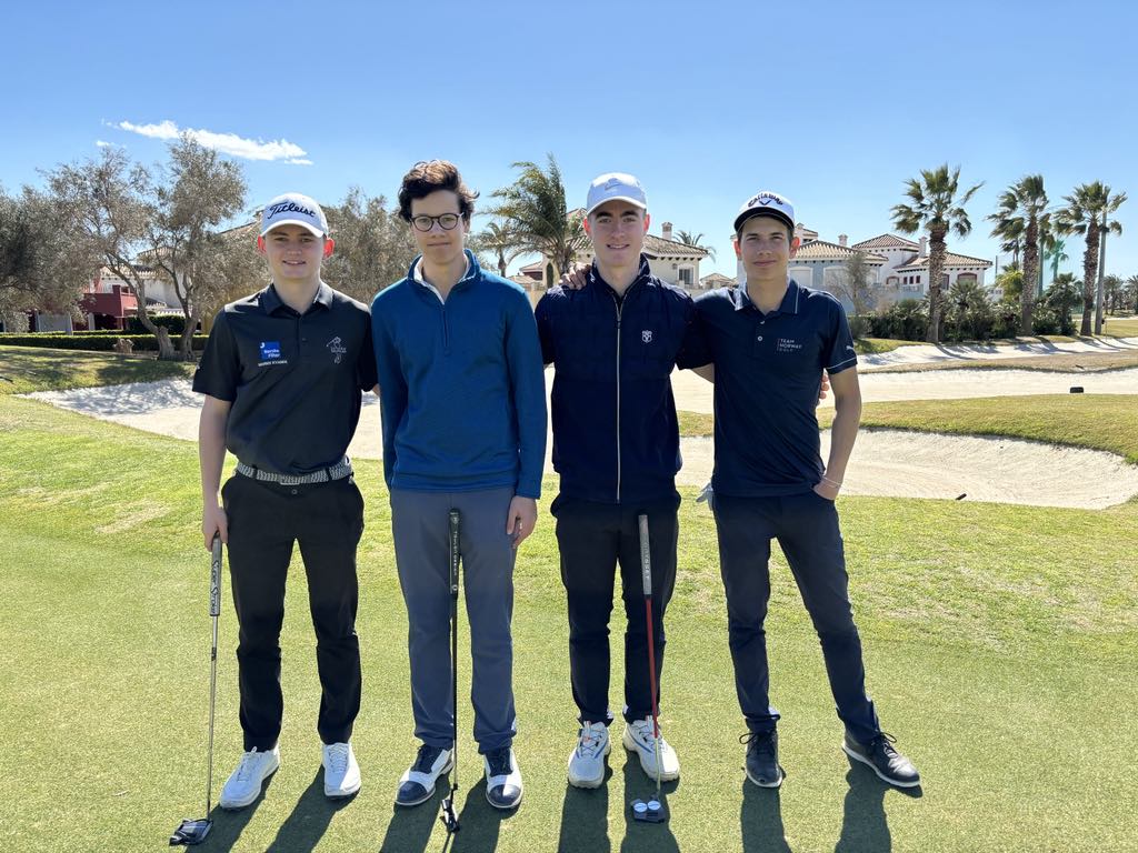 Her ser vi Marius Kvande sammen med sine medspillere Ali Elsayed fra Frankrike, Julius Wunsch fra Tyskland og Cornelius Fahrang fra Oslo Golfklubb.
