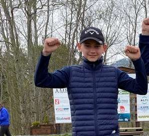 Det hører også med til historien at far Tom Erik spilte en meget bra runde i kveld, med 18 poeng og delt 4. plass 🙂
