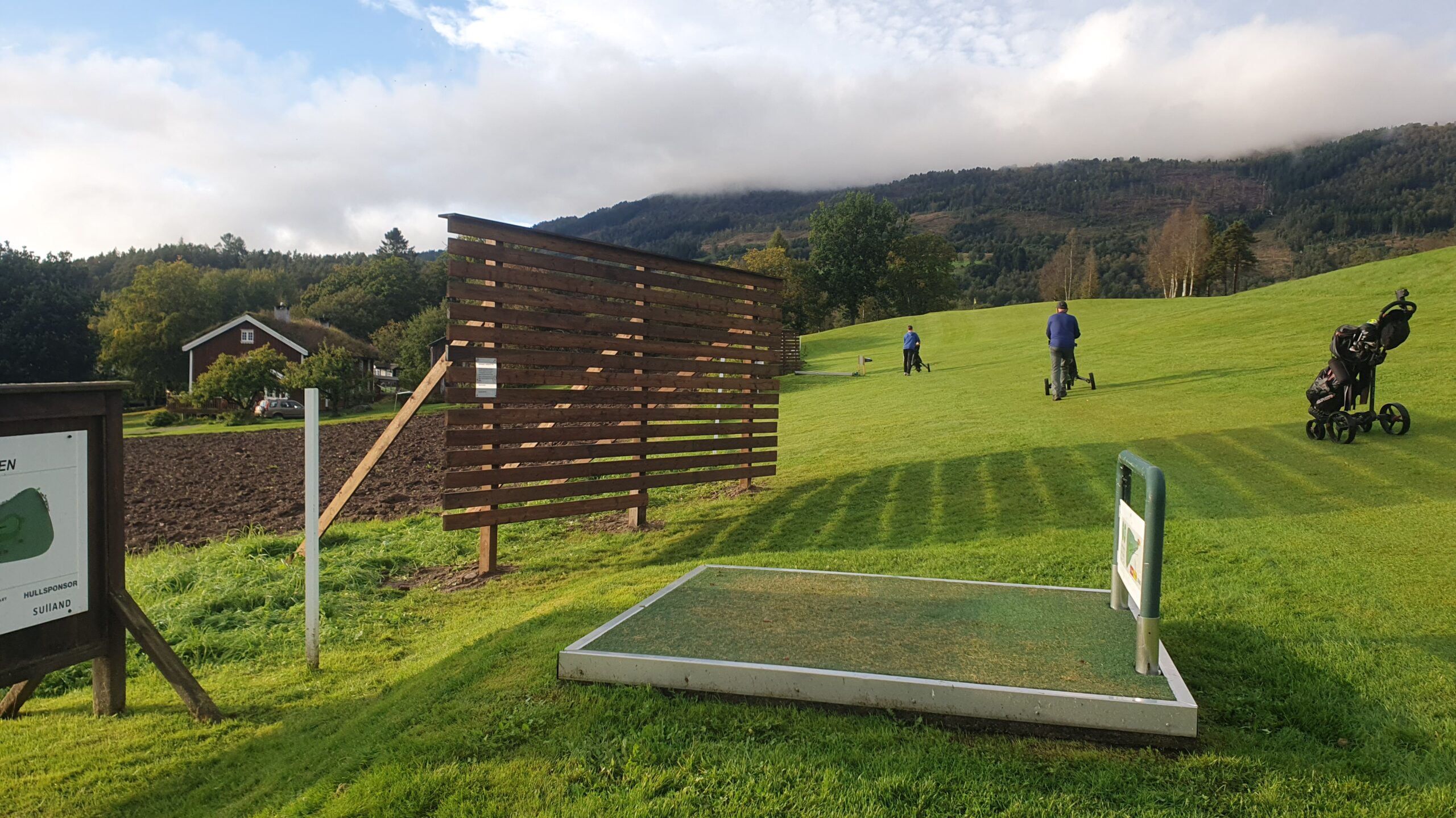Det har nok dessverre hendt at enkelte golfballer har blitt slått i litt feil retning fra hull 7 / 16, og endt svært nær trappa og uteplassen til Liv og Jon Oren på Mo. Dette er en stor risiko som er ubehagelig både for spillere, klubben og våre naboer/grunneiere – så derfor har det nå blitt gjort tiltak. For å hindre at dette skal skje er den gamle sikkerhetsveggen (som viste seg å være for liten) nå nemlig byttet ut med en ny vegg, som er både høyere og bredere.