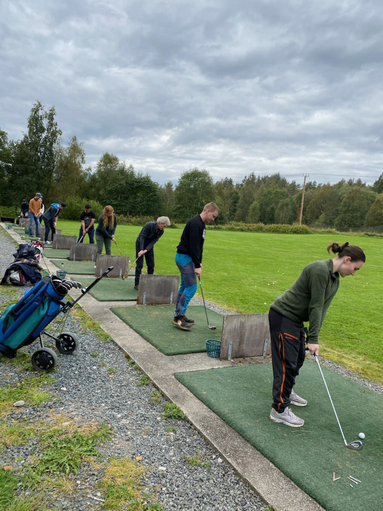 Kurset startet med samling i klubbhuset fredag ettermiddag – og ganske snart videre til drivingrangen der grep, oppstilling og grunnleggende svingteknikk var tema. Søndag fortsatte kurset med forskjellige slagteknikker – både på drivingrangen og ute på banen. Og i kveld ble kursdeltakerne delt i tre grupper med følge av Tove Garte, Geir Garte og Emil Naterstad, der alle sammen gjennomførte noen hull ute på banen for å få et innblikk i selve spillet – inkludert forståelse av regler og banemerking.