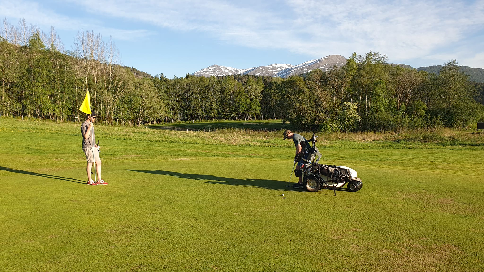 Daniel Nes Fiske ble utsatt for en ulykke for vel 4 år siden, og ble avhengig av rullestol i hverdagen. Men dette hindrer ikke Daniel i å spille golf. Med hjelp av bl.a. Nils Erik Ulset i Møre og Romsdal Idrettskrets har Norges Golfforbund utplassert en paragolfbil ved Surnadal Golfpark – som Daniel disponerer. Daniel er ofte å se på golfbanen – men har ikke deltatt i turneringer før i kveld. Men Daniel imponerte med gode og «rene» slag – og hengte godt med oss andre i flighten. Lengden begrenser seg rimeligvis noe, men dette tar Daniel igjen på presisjonen.