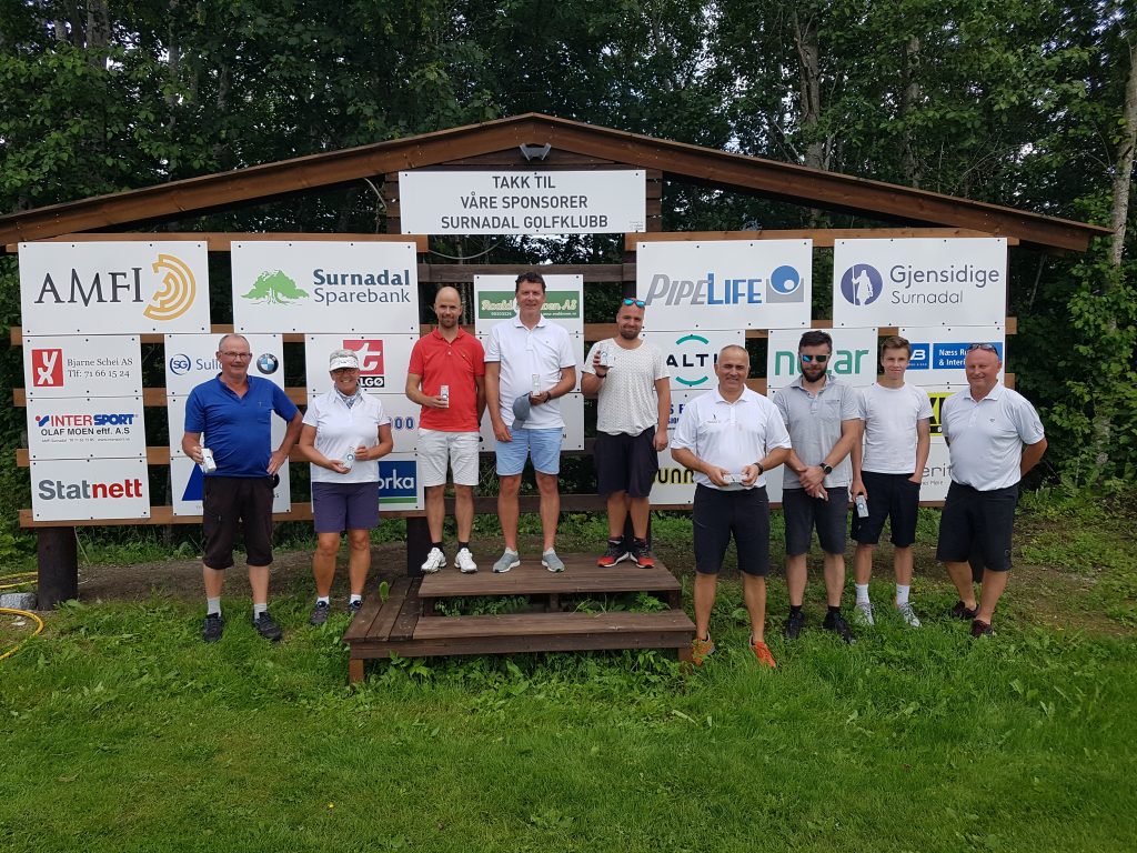 Det var 26 deltakere (8 lag) på startlista denne gang.  Mange av hjemmeklubbens spillere er bortreist på ferie, og dette bidro nok til at deltakelsen kanskje var mindre enn vi hadde håpet på.   Vi takker Sunndal GK sine to lag for at de tok turen over fjorden – og ønsker de velkommen tilbake 🙂