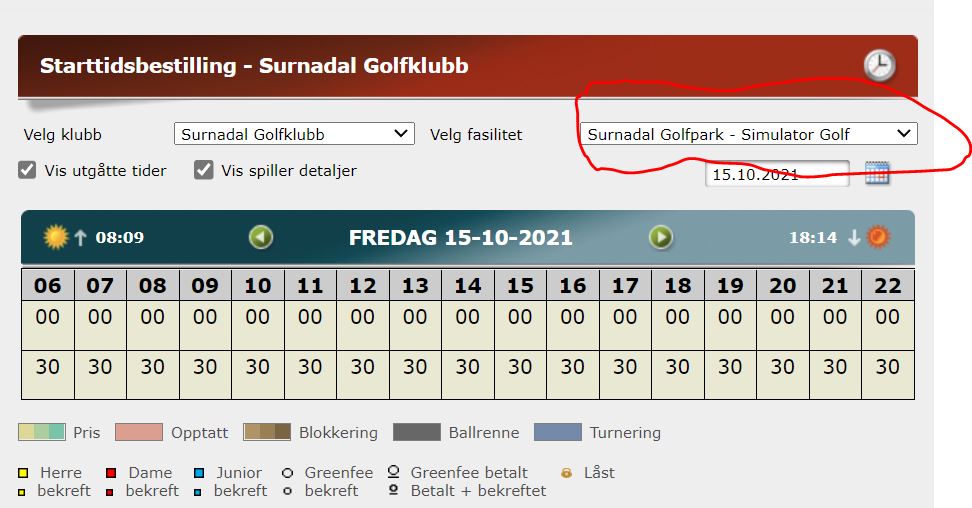 Husk å velge «bane» Surnadal Golfklubb – Simualtor golf.
