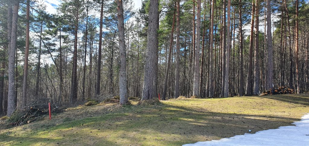 Her er et par bilder tatt fra greenområdet på hull 8 søndag 20. mars. Betydelig bedre lysforhold og vekstvilkår nå – som vil være svært positivt for gressveksten på denne greenen.