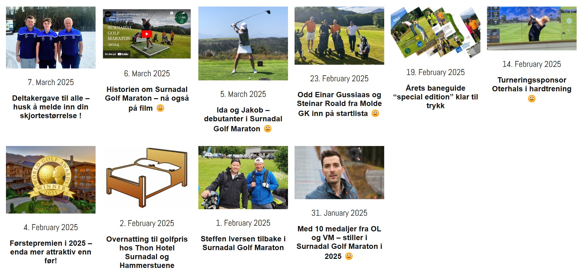 Turneringen har som kjent en egen hjemmeside, der vi har samlet all aktuell informasjon om turneringen. Ta gjerne en titt på www.surnadalgolfmaraton.no, der du også vil finne store og små nyhetssaker om både deltakere og turneringen forøvrig.