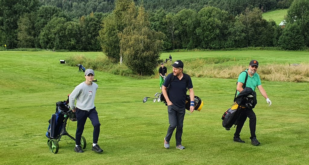 Unggutten Erling Svinvik (16) spilte kjempegodt hele helga, og vant stablefordklassen i suveren stil – og handicapet fikk et betydelig jafs nedover. Erling fikk hele 91 poeng på 36 hull ! Her sammen med Knut Bergli og Geir Forbregd.