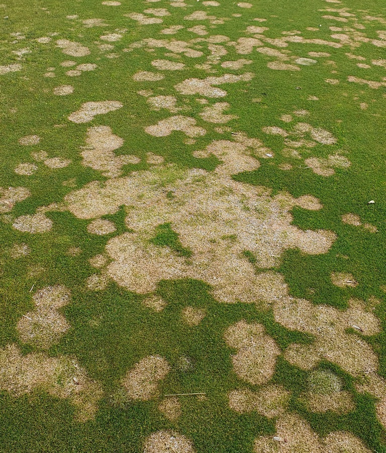 Noen av greenene er litt preget av snømugg (karakteristiske runde flekker med rosafarge i kanten), men dette vil normalt rette seg ganske snart – kombinert med at greenene skal resåes.