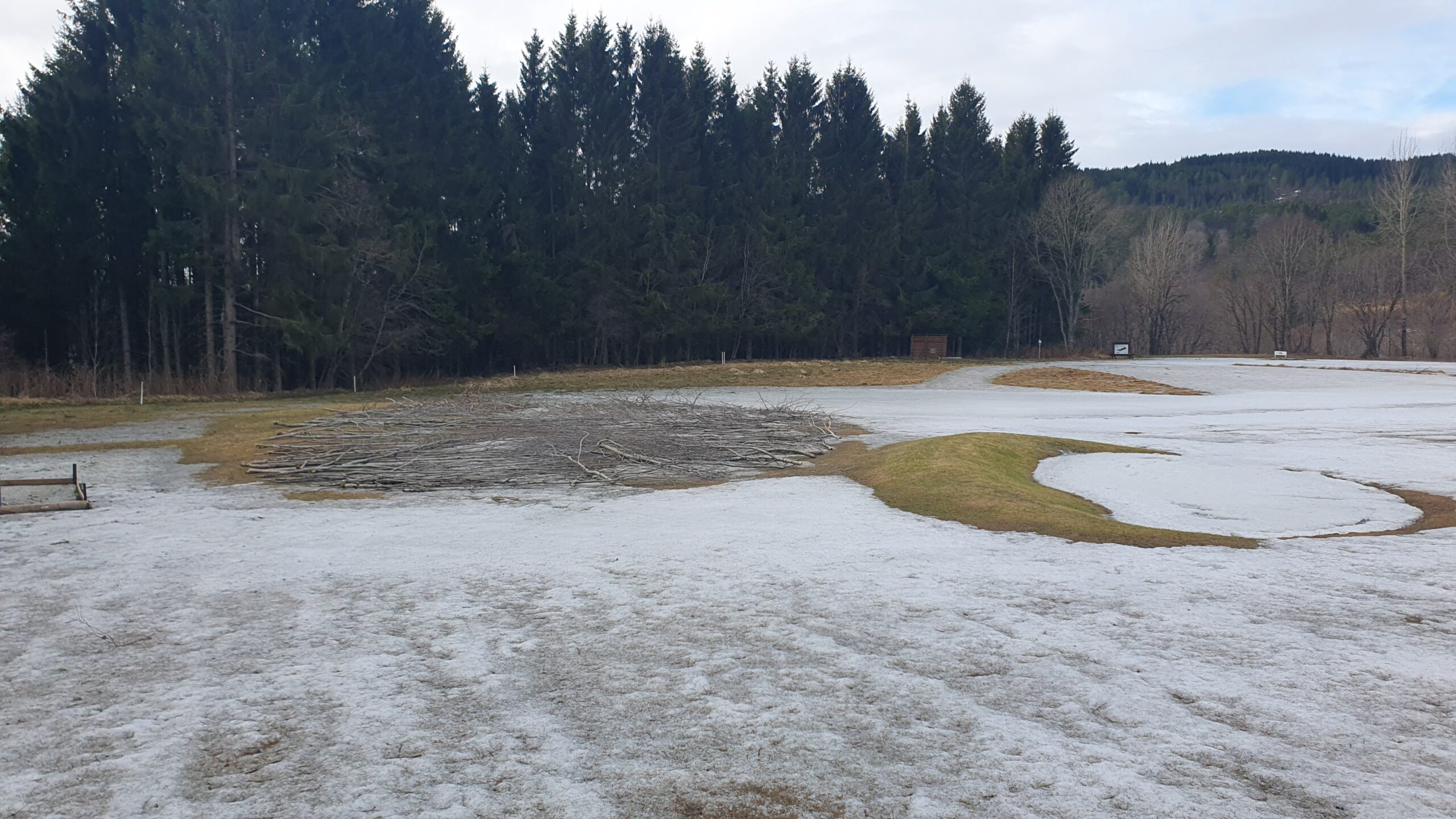 Men dagens lille «befaring» på baneområdet ga likevel en viss optimisme med tanke på tidlig vår. Det er tross alt bare mars ennå, og selv om det fortsatt kan komme en halvmeter snø så er det uansett en fordel at store deler av banen er bar. Det ligger fortsatt et lag med is og snø på nedre del av banen, samt på øvre deler av hull 8 og 9. Greenene ser absolutt lovende ut (green 3 er dekket med kvist for å hindre isbrann), så det bør ligge godt an med tanke på åpning om en måneds tid og åpningsturnering som planlagt søndag 5. mai.