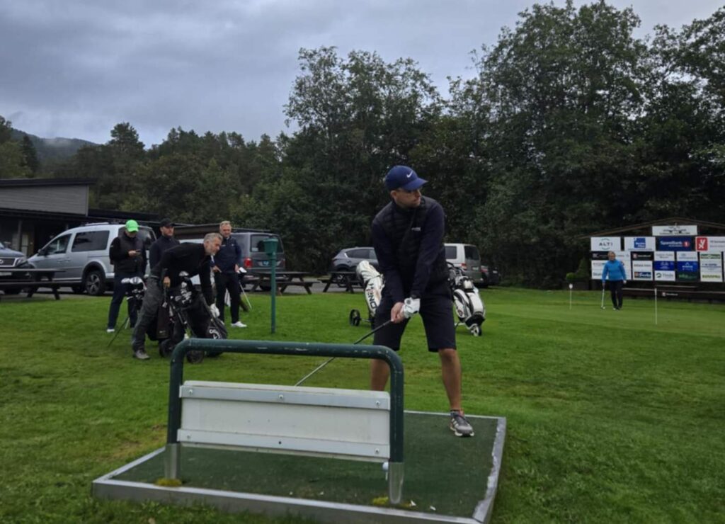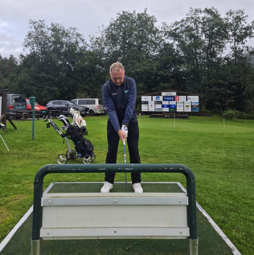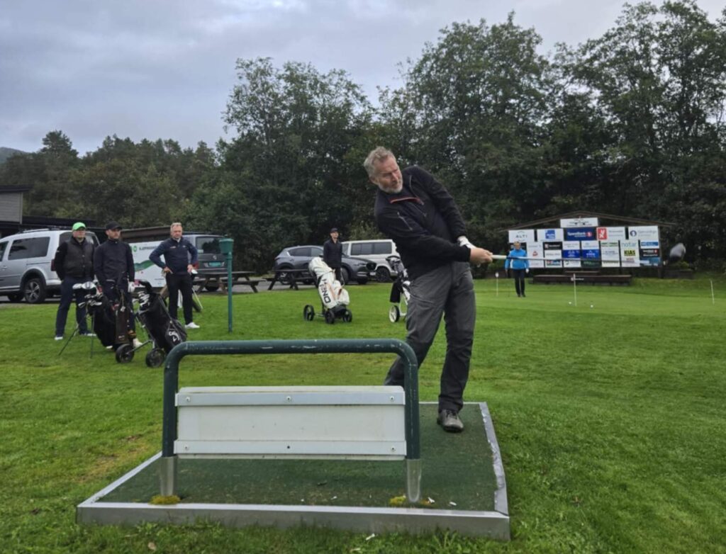 Årets sammenlagtvinner Tor Mogstad mens han forbereder sitt utslag fra hull 1.