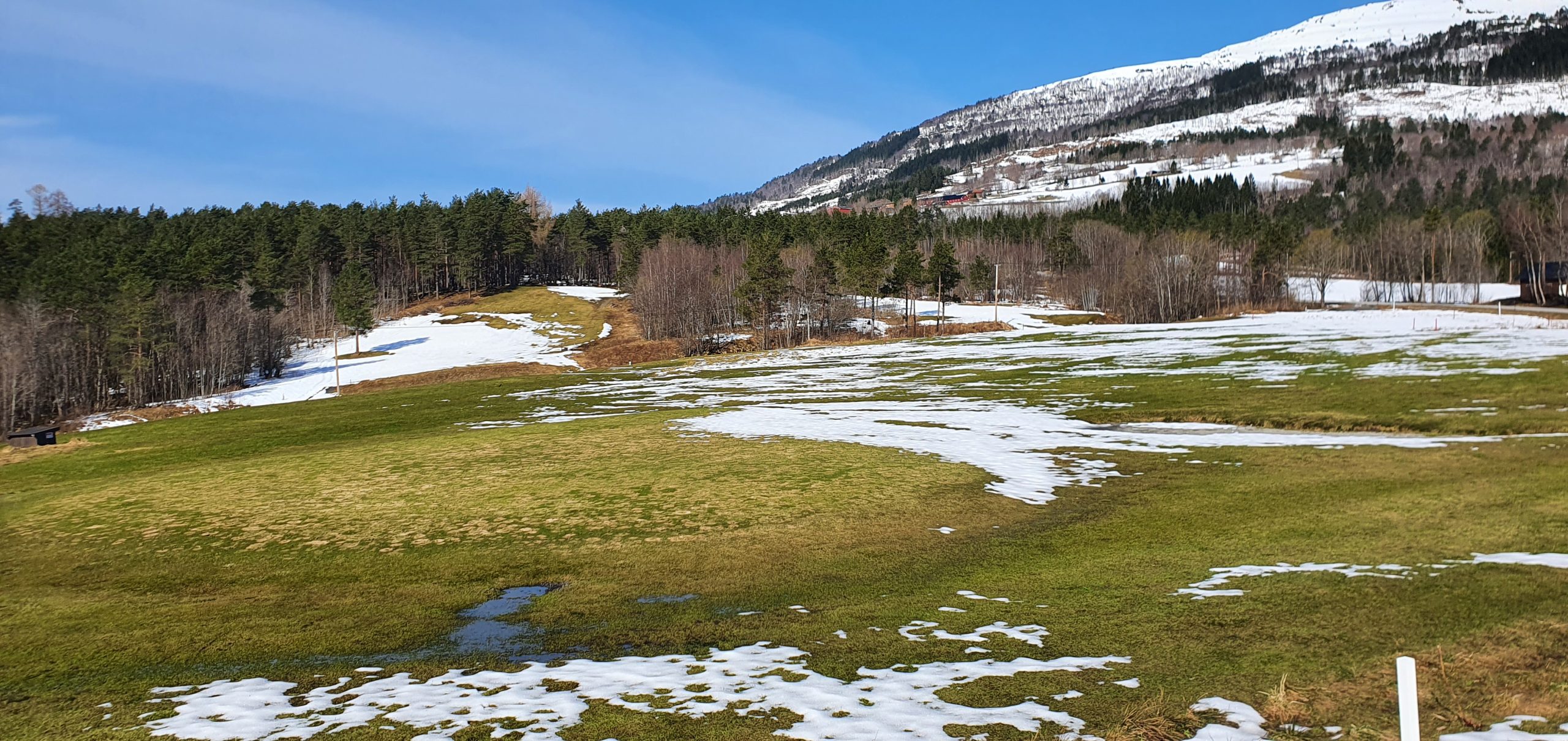 Som kjent fikk vi et skikkelig snøfall igjen i månedsskiftet mars/april, og det har vært mye snø på Surnadal Golfpark helt fram til nå.